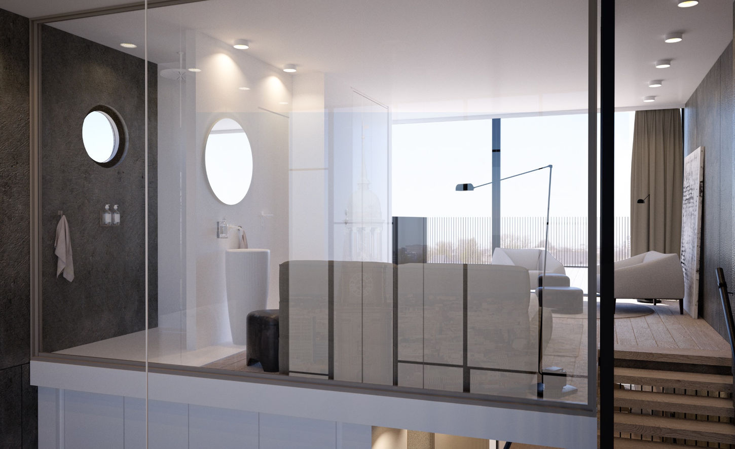 Visualiesierung anlässlich des Umbaus und Aufstockung eines historischen Mehrfamilienhauses in der Hamburger Innenstadt.